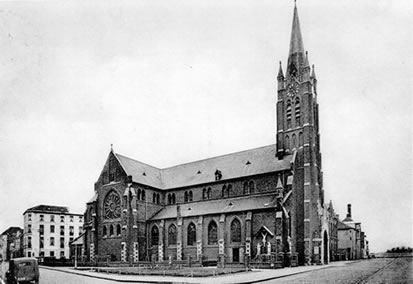De Antwerpse architect J. Ritzen tekende de plannen van de nieuwe kerk naar het voorbeeld van een reusachtige basilica. Mgr. De Smedt, bisschop van Brugge, legde in 1955 de eerste steen en in 1958 kwam hij de nieuwe kerk inwijden.
